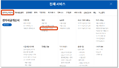 전체서비스 > 전자세금계산서 >작성> 수정세금계산서 작성 메뉴를 클릭합니다. |