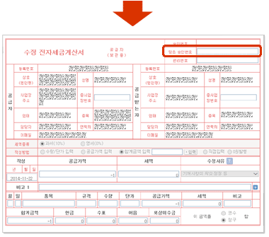 수정사유 선택 후 당초승인번호(원세금계산서의 승인번호) 24자리를 입력해주세요.
