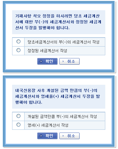 ※ 기재사항 착오정정 / 내국신용장 사후개설은 두 장의 수정세금계산서를 발행해야 합니다.
