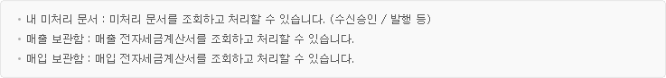 ![세금계산서 조회 [내 미치리 문서 / 매출 보관함 / 매입 보관함 공통]](/image/center/img_Mapp_stitle04.gif) |