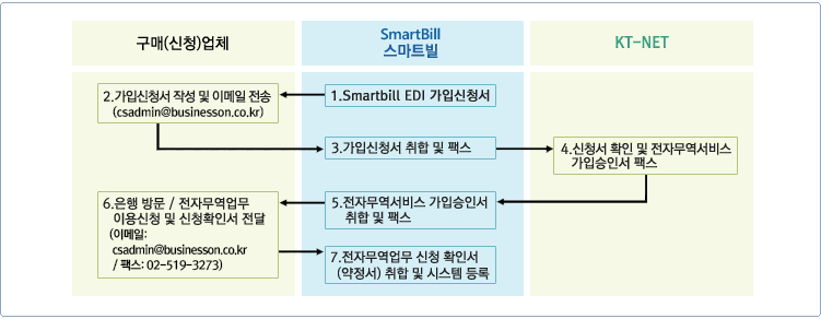 KT-NET가입이 완료된 후 은행에서 발급 받은 전자무역업무 이용 신청 확인서를 스마트빌에 전달하면