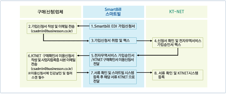 스마트빌 구매확인서 서비스를 이용하시려면 먼저 KT-NET 가입이 완료되어야 합니다.