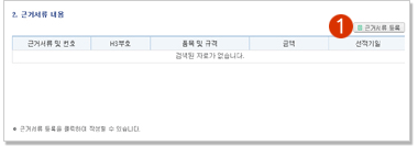 근거서류 등록을 클릭하여 근거서류를 작성합니다. |