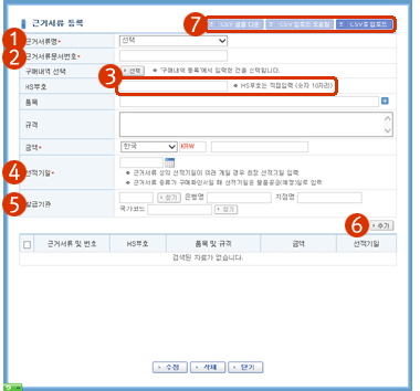 CSV업로드로 근거서류를 대량으로 입력할 수 있습니다. |