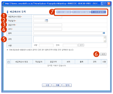 세금계산서 목록을 작성 합니다. |